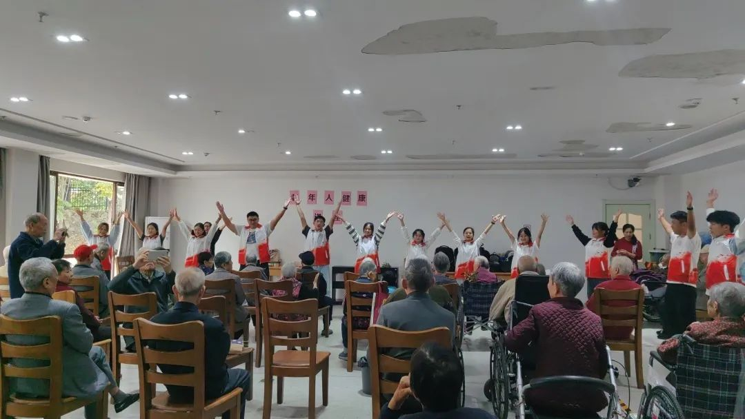 随后,志愿者带着爷爷奶奶们一起前往活动室。在这里,江西应用科技学院的志愿者们为爷爷奶奶带来了《勇气大爆发》舞蹈,一瞬间点燃全场氛围很多爷爷奶奶们跟着音乐欢呼、跟着音乐舞动,与志愿者们一起动起来。