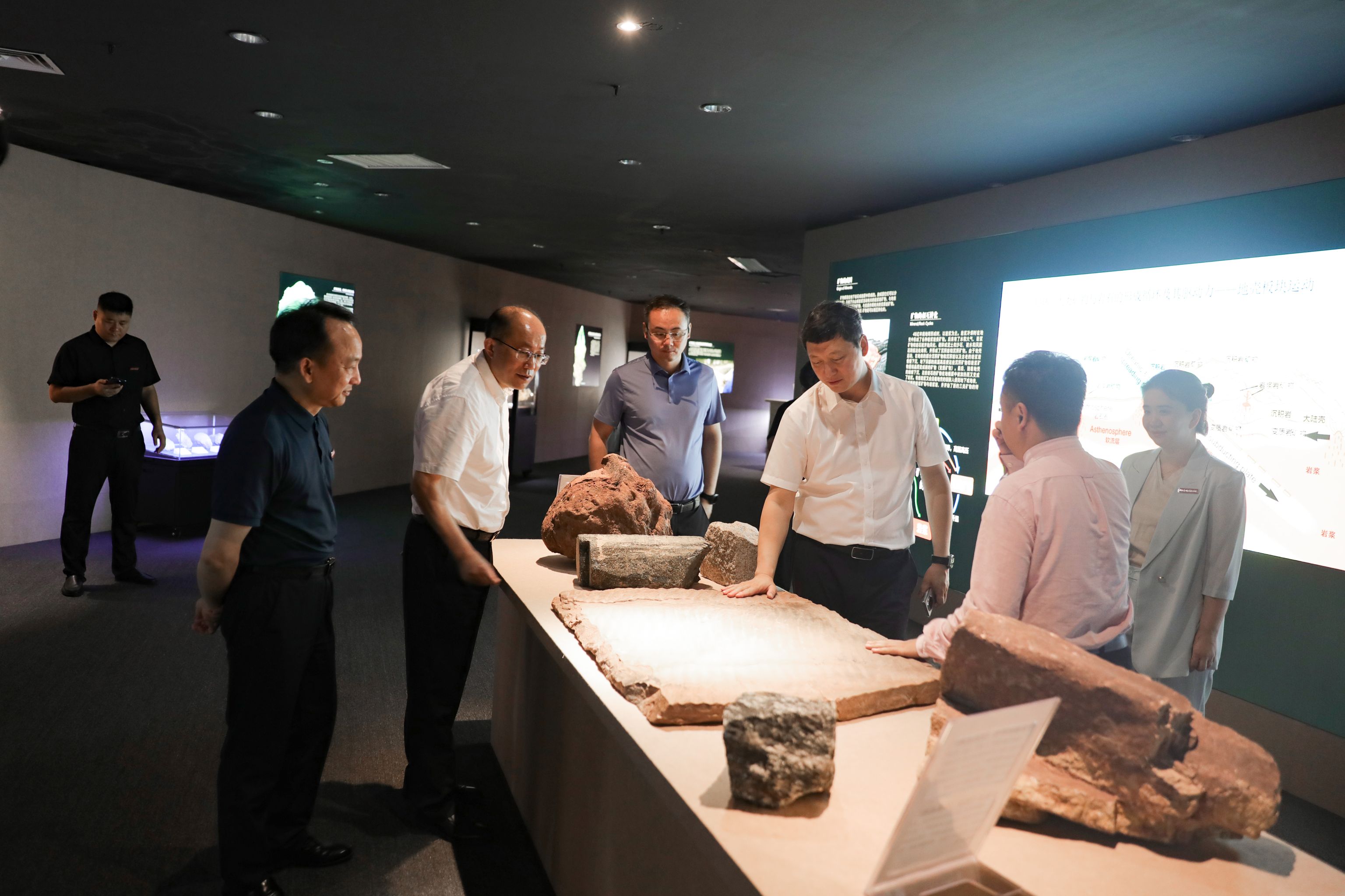 吴英策一行深入学校开展实地走访调研,对学校生态智能化校园和校内实训基地给予充分肯定。在学校刘光华自然遗产博物馆,吴英策不时驻足观看,他表示,学校博物馆内矿物化石品种丰富、精美、珍稀,有着很高的鉴赏价值和科研价值,学校要充分用好这个认识自然历史、了解自然科学的科普教育场所,广泛开展科普活动、讲好地球故事,打造独具影响、应用性强的地质学科普殿堂和研学基地。
