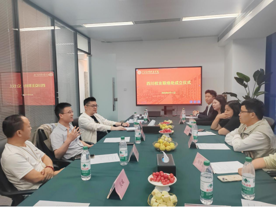 4月11日,四川校友联络处成立大会暨校友座谈会在成都市蓝润置地广场四川懋德锦川商贸有限公司召开。学校党委书记贺一松,校友工作办公室主任李园园与四川地区校友代表参加。