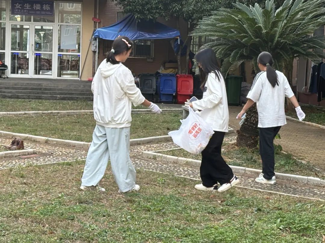 草坪区域也是本次劳动教育实践活动开展的场所。同学们细致清理草坪里的杂物、精心维护周边植被,于劳动中感受自然之美,增强生态保护意识。在宿舍楼栋附近,同学们有序地进行除草、认真清扫小径、仔细擦拭设施,全身心体会劳动价值,传承劳动精神,培养社会责任感,让劳动教育扎根于实践,绽放于学生的心灵。