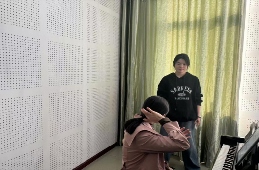课上,熊芬老师重点讲授如何使歌曲中的歌词和情感进行有效结合,准确鲜明地把握作品的情感内涵及对作品体验的个性特征。课上熊芬老师让学生演唱《求爱神给我安慰》、《曙色》,通过讲授法让学生理解歌曲的创作背景、演唱风格及歌词的意义。通过示范法、练习法解决学生歌曲情感处理问题。熊芬老师在教授声乐专业的理论知识的同时,注重技能性、艺术性的培养,使学生在学习与演唱中感受生活、感知世界、感悟人生,不断提高学生的人格修养和整体素质。课后,熊芬老师与观摩教师就教学过程的设计、师生互动、课堂小组讨论、教学评价等几个方面进行了热烈的交流和沟通。
