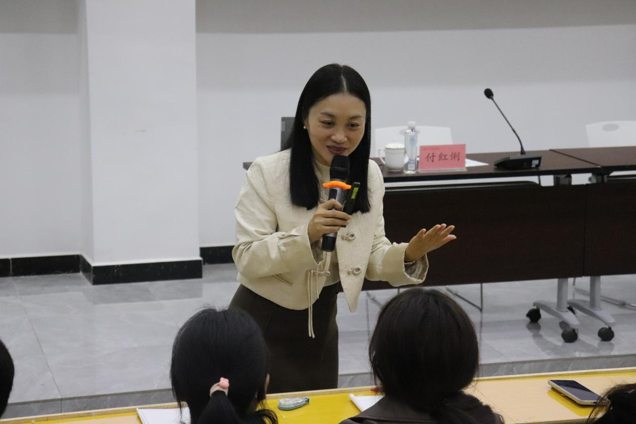 对于在场的小学教育专业师范生,付老师特别寄予厚望。她强调,师范生是未来小学教育的中坚力量,肩负着启迪儿童智慧、塑造人格的重任。作为未来的语文教师,师范生不仅要掌握教学知识,更需要在教学实践中具备敏锐的观察力和灵活的应变力,善于根据学生的特点调整教学策略,真正做到因材施教。付老师鼓励师范生在学习中扎实掌握阅读策略教学的基本方法,并在未来的教学中善于引导学生探索阅读的乐趣和价值。她深情说道:“阅读是一项伴随一生的能力,更是一个人精神成长的基石。”作为未来小学教育者,你们不仅仅是知识的传播者,更是学生阅读世界的大门开启者。通过你们的努力,孩子们能够发现阅读的魅力,养成终身学习的习惯,这是小学教育最美的意义。