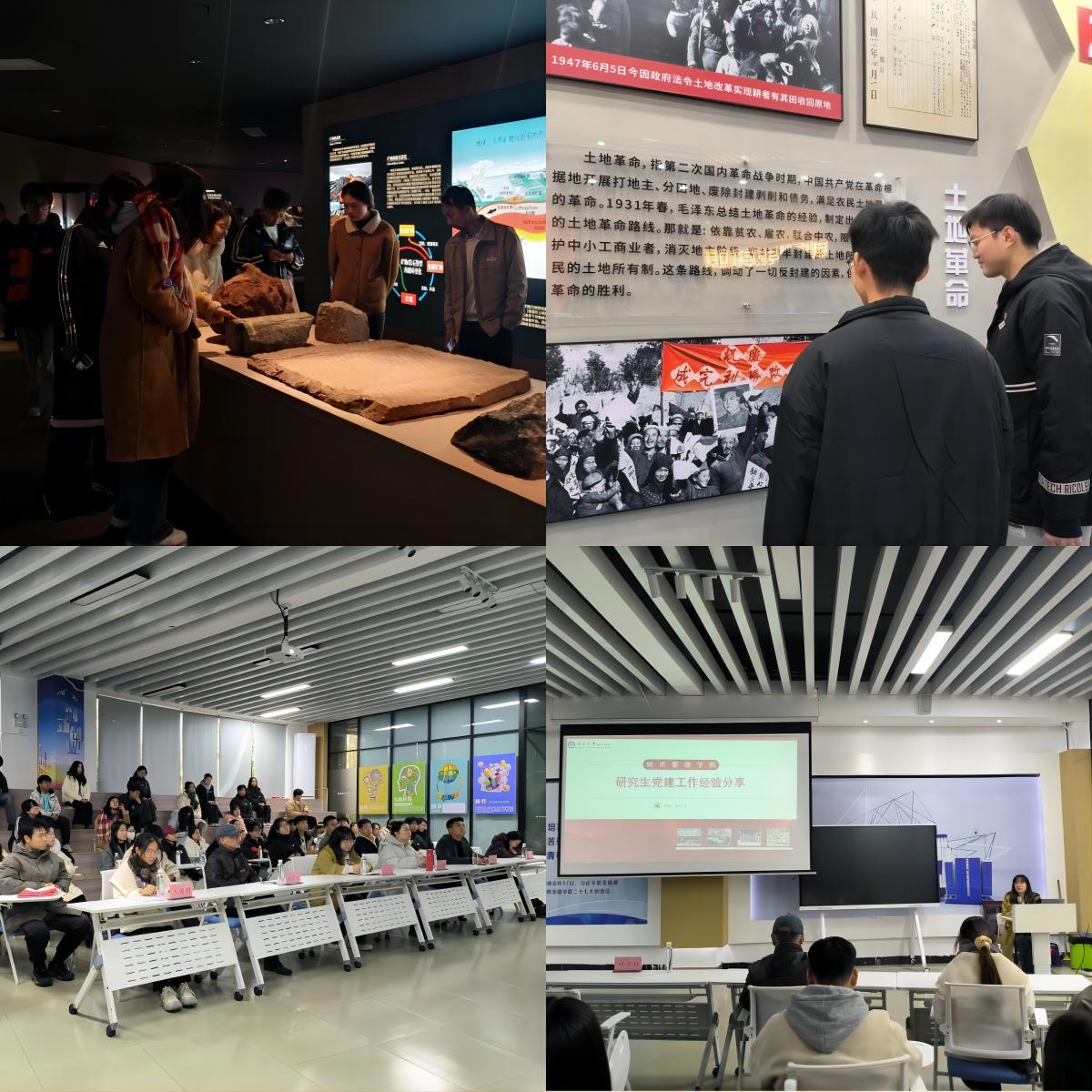活动期间,大家首先参观了学校的“信念”——江西红色文化记忆馆、刘光华自然遗产博物馆,通过实地观摩,深入感悟红色文化底蕴与自然遗产魅力,进一步筑牢信仰之基。随后,在产教融合中心119教室开展座谈交流,学院学生党支部工程造价党小组组长陈隆,南昌大学经济管理学院学科与研究生(学生管理)办公室副主任、统计与数据科学研究生党支部书记叶子钰,MBA研究生党支部副书记罗聪抒,经济学研究生党支部唐张曦等,聚焦支部建设经验展开深度交流与分享,在互学互鉴中拓展工作思路,提升党建工作质效。