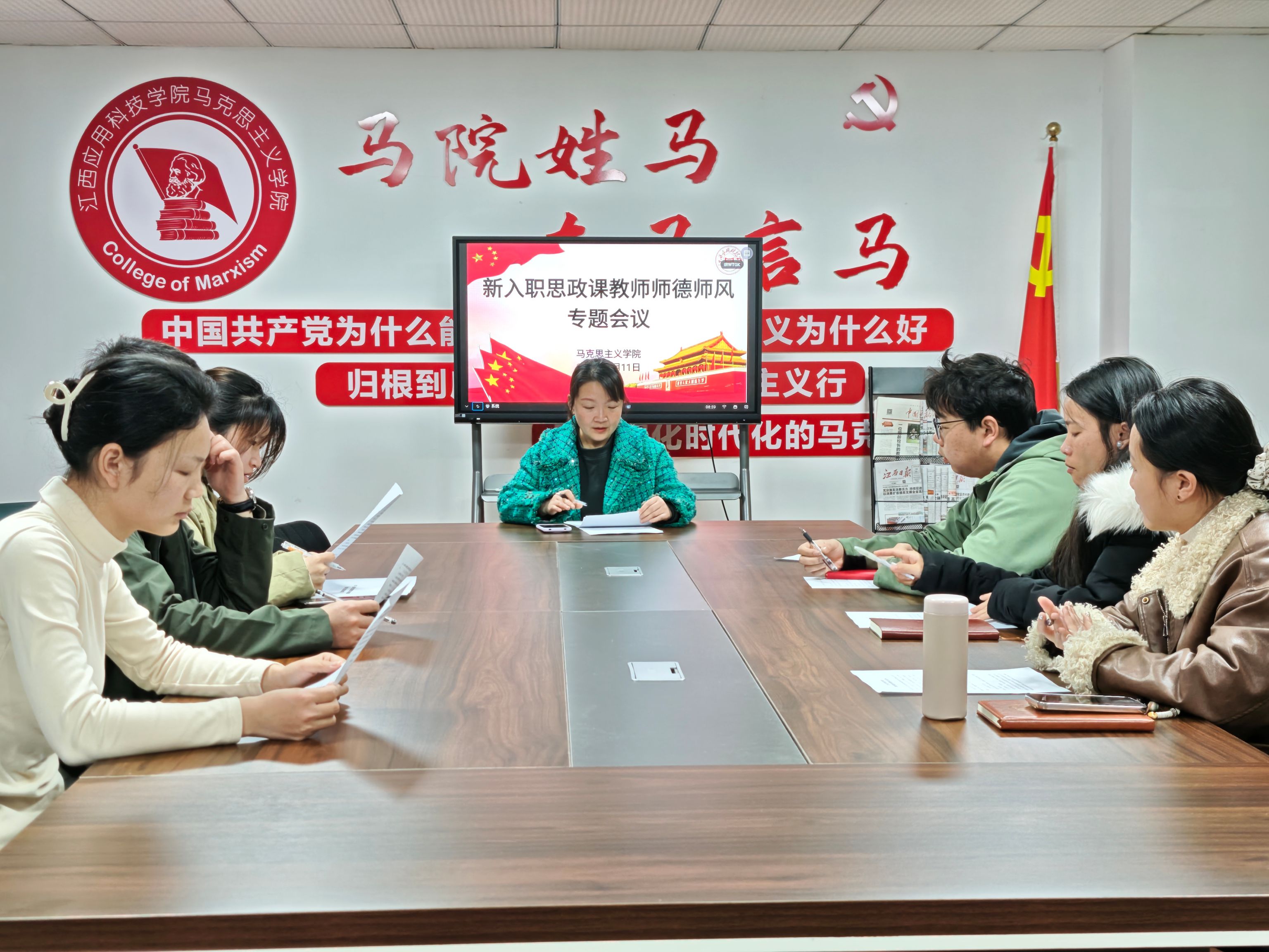 为全面贯彻习近平总书记关于教育的重要论述,落实立德树人根本任务,深化新时代思政课教师队伍建设。3月11日,马克思主义学院开展了新入职思政课教师师德师风建设专题会议,会议由马克思主义学院院长主持,新入职教师参加。