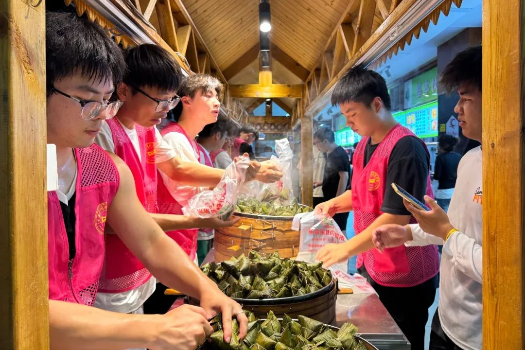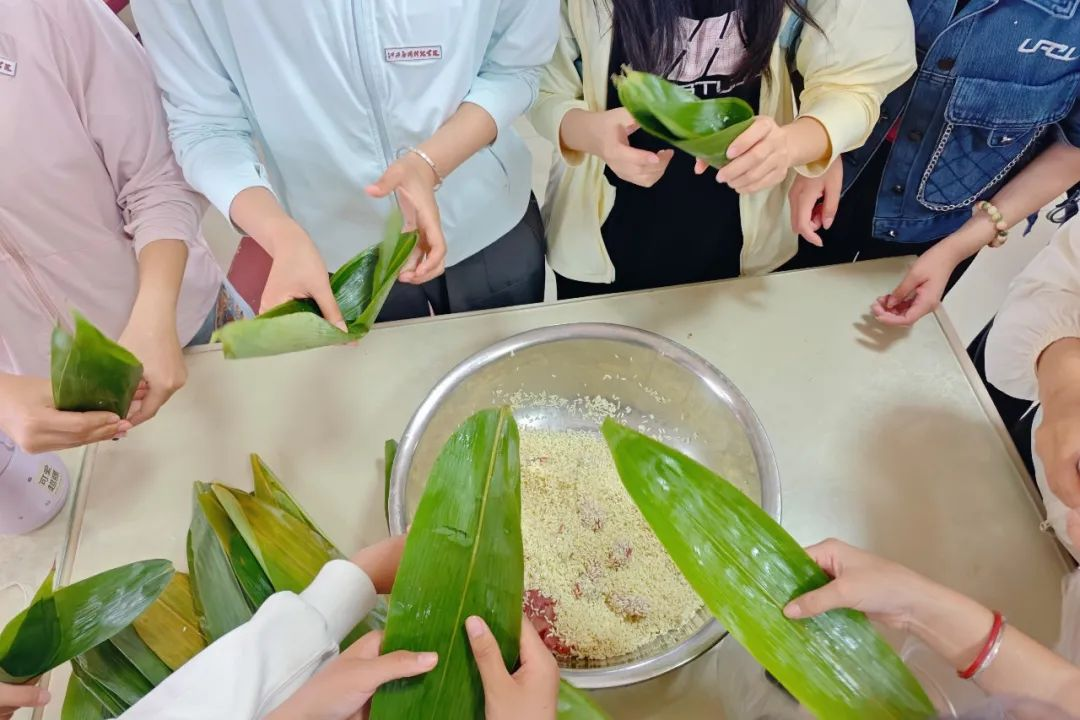 粽香浓郁,糯米飘香。一颗颗冒着热气的、软糯饱满的粽子从锅中拿出,同学们看见自己亲手包的粽子喜悦万分。活动结束后,参与活动的同学们也主动将粽子分享给身边同学,为他们送去一份节日的问候。