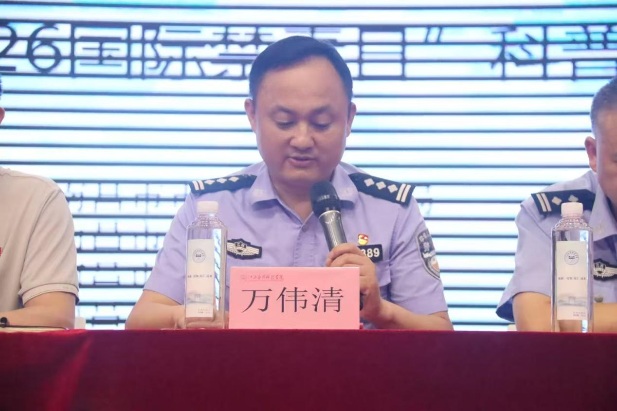 新建公安分局党委委员万伟清围绕“药物滥用危害与预防”作专题讲话。他详细讲解了药物滥用的定义及其对身心健康、社会功能的危害,并给出科学用药、妥善保管药物等实用建议,呼吁师生提高警惕,防范青少年药物滥用问题。