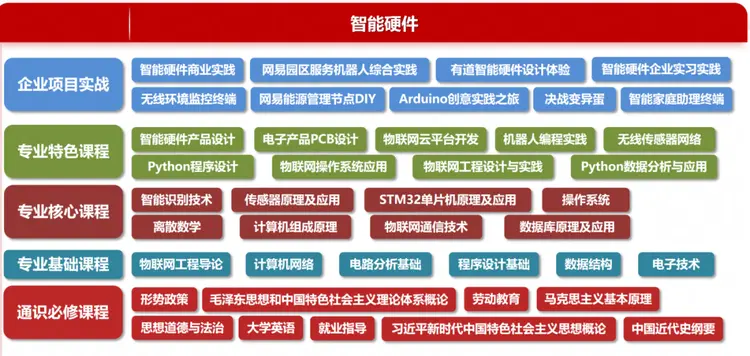 培养目标:培养掌握物联网核心技术与智能硬件开发能力,具备扎实工程实践能力,适应AIoT时代需求的高素质应用型工程技术人才。