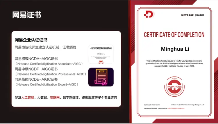 参与完成项目师生获得网易企业认证证书。