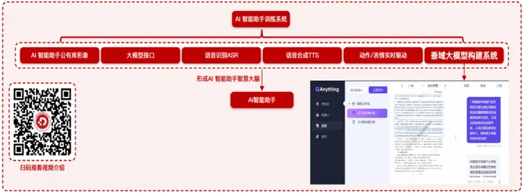AI智能助手训练系统支持私有化部署,包括本地大语言模型部署、语音识别ASR部署、语音合成TTS部署、控制端的部署和显示端部署,学生可以在该系统中进行场景模型训练、AI智能教学助手交互效果调整(如更换背景、添加图片、视频素材等)及AI智能教学助手问答展示等操作,通过校企共研共建,打造具有学校特色的AI智能教学助手,也可服务于当地区域经济,助力企业数字化建设。