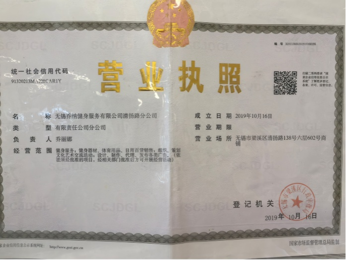 无锡乔纳健身服务有限公司清扬路分公司成立于2019年10月16日其主要经营范围是健身服务;健身器材、体育用品、日用百货销售;组织、策划文化艺术交流活动;设计、制作、代理、发布各类广告。
