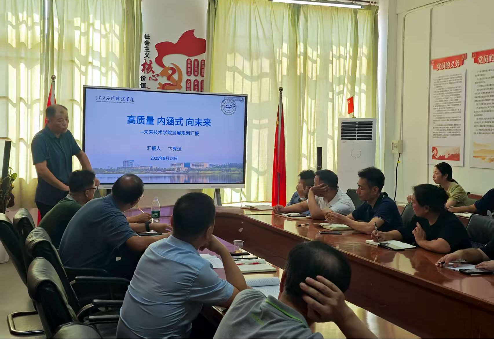 为部署新学期重点任务,凝聚教职工力量,9月5日,未来技术学院在210会议室召开新学期第一次行政暨教学工作会议。院长卞秀运,党总支书记卢胜勇,副院长彭军出席会议,学院全体行政管理人员、各专业带头人参加会议。会议由院长卞秀运主持。