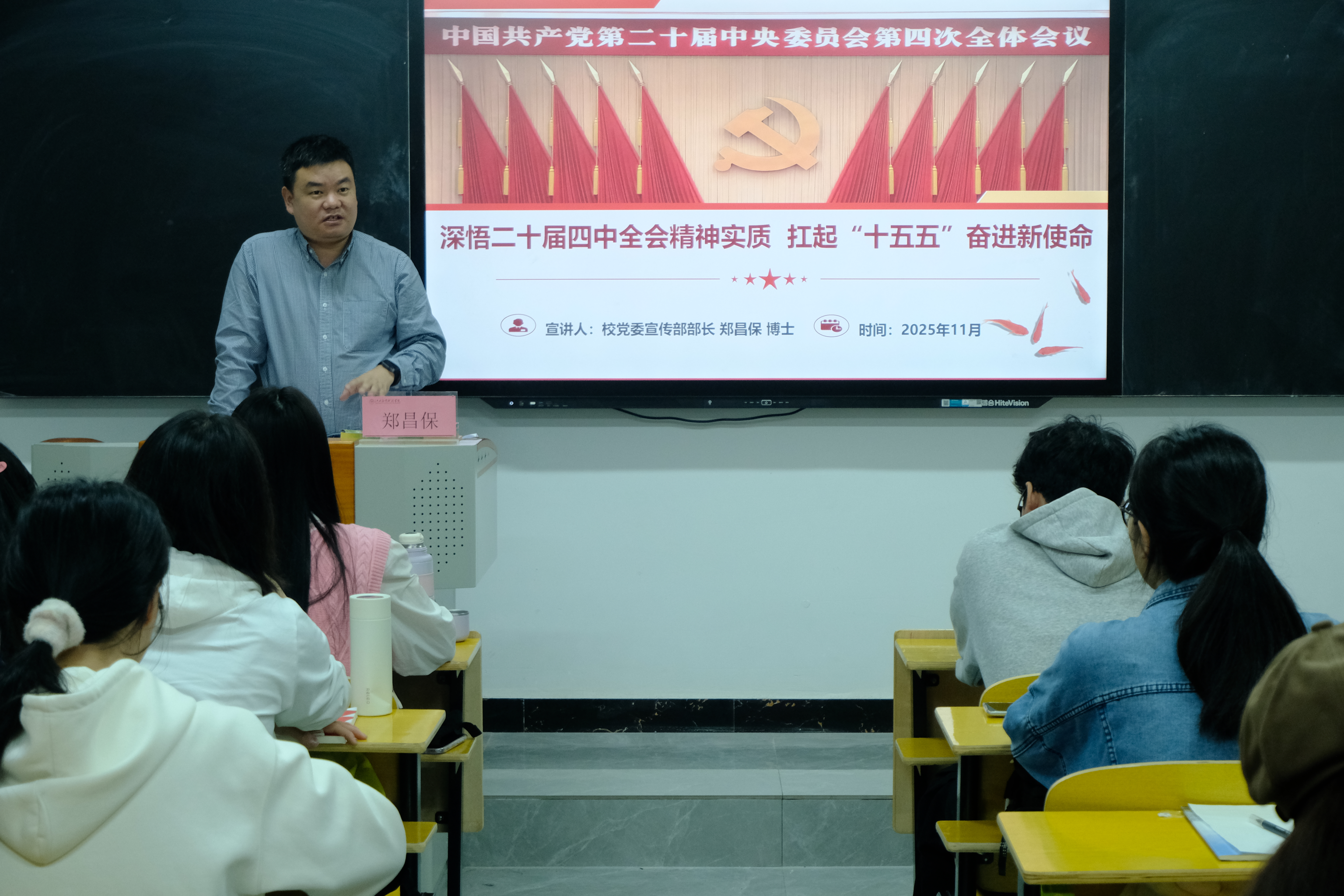 为深入学习贯彻党的二十届四中全会精神,引导全院师生把思想和行动统一到全会精神上来,11月2日晚,教育学院举行学习贯彻党的二十届四中全会精神宣讲会,邀请学校党委委员、宣传部部长郑昌保教授做专题辅导,教育学院师生代表参加。
