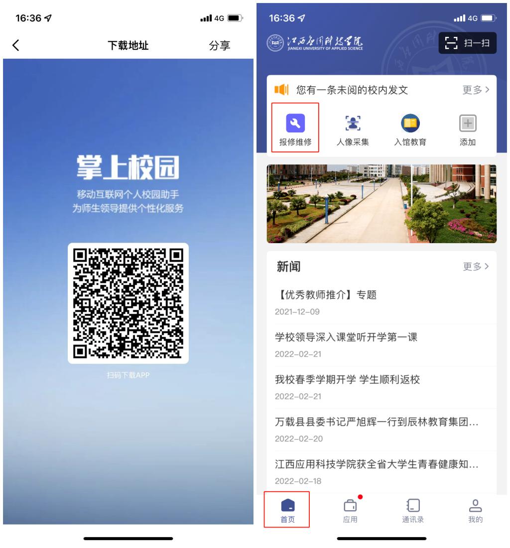 在首页顶部点击“报修维修”小程序进入。