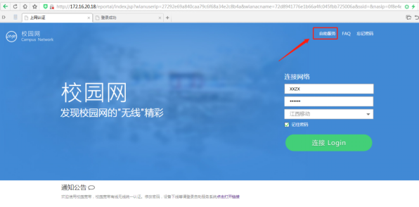 1点击右上角自助服务按钮。