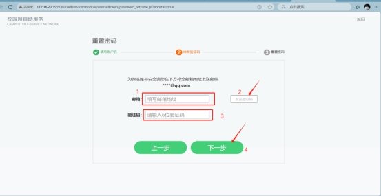 3.输入邮箱接收验证码,输入验证码点击下一步