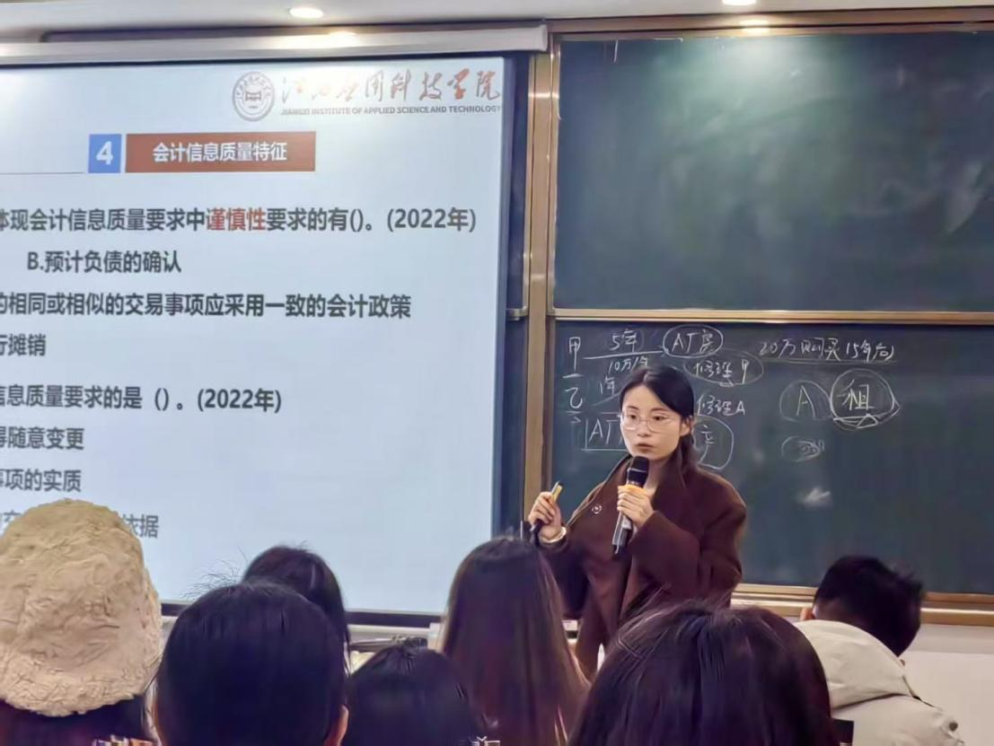 在课堂上,朱婵媛以会计信息质量特征为核心内容,巧妙地运用了一系列生动且贴近生活的案例分析,生动地进行了讲解,课堂氛围十分活跃,节奏安排紧凑有序。