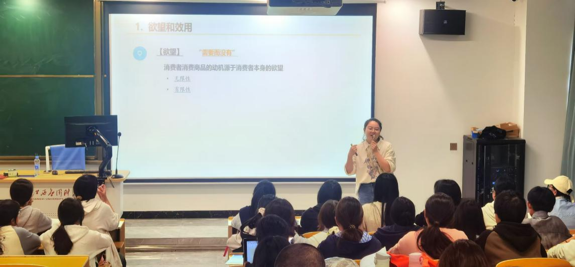 2025年10月28日下午,经济管理学院在三元大厦阶梯七教室开展公开课教学活动。本次公开课由张莹老师主讲,授课内容为《经济学基础》课程的“效用理论”,2025级本科财务管理3班全体学生及学院全体专任教师到场观摩学习。
