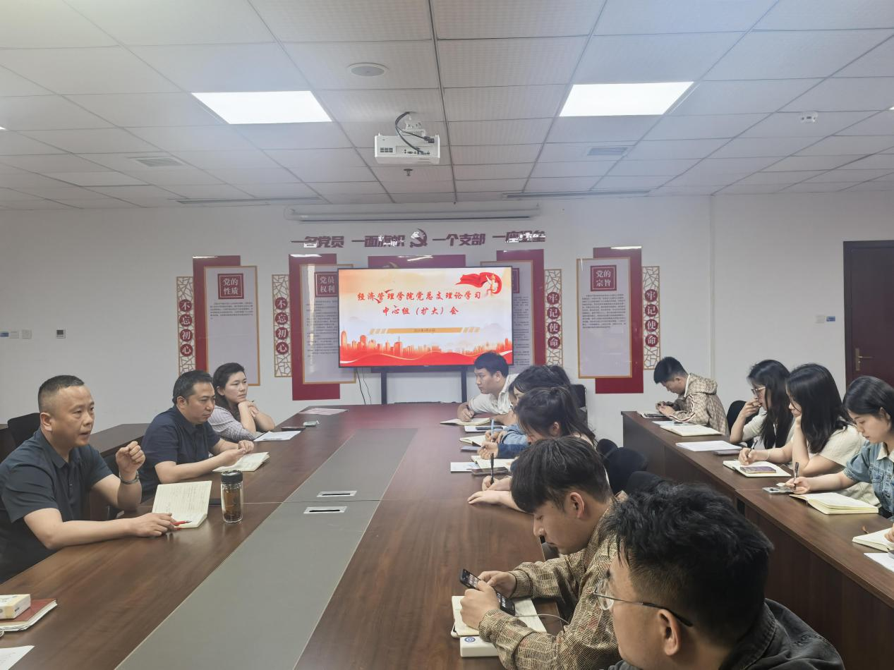 2025年4月10日,经济管理学院于综合楼305党员活动室开展了第四次党总支理论学习中心组学习(扩大)会议,传达学习擦亮新时代党的建设“金色名片”——以习近平同志为核心的党中央贯彻执行中央八项规定、推进作风建设纪实。会议由党总支书记王飞主持,全体中心组成员及党务干部参加。