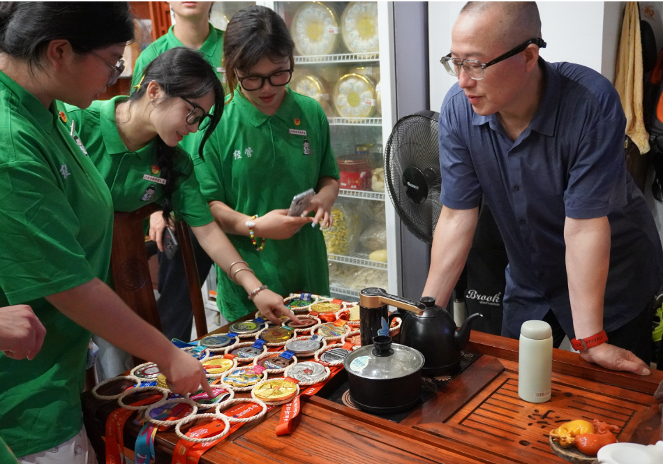 实践队重点参观了三皇里街区的神农堂燕窝参茸行。店主向队员们详细介绍了几味代表性中药材:三七被誉为“血管清道夫”,主产云南文山,店主特别说明“春三七”质地饱满、药效更佳;西洋参片店主对比了国产与进口的区别,指出加拿大产西洋参皂苷含量较高,适合气阴两虚者,此外,店主还带领队员们通过近距离观察药材形态、嗅闻气味,加深了对中药真伪优劣鉴别的理解。