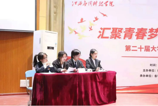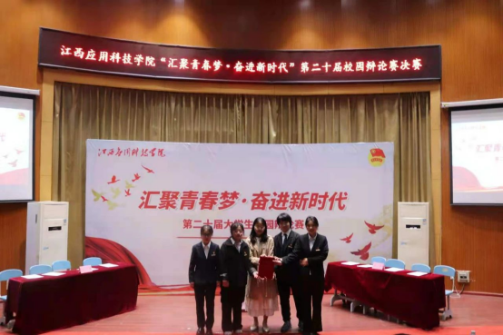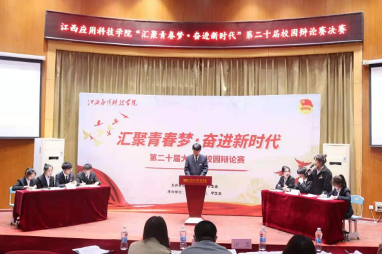2021年4月13日,江西应用科技学院举办的“汇聚青春梦,奋进新时代”第二十届校园辩论赛总决赛在浴星湖大讲堂拉开序幕。经过各分院的层层选拔,最终艺术与设计学院和其他三支队伍进入校级比赛,开启巅峰对决。