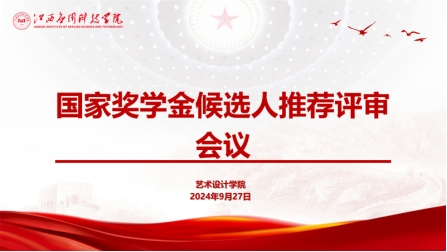 2024年9月27日,艺术设计学院2023-2024学年国家奖学金候选人推荐评审会在劲松楼202党员活动室正式举行。此次评审会旨在选拔出最优秀的学生代表,发挥榜样作用,激励广大同学努力学习、积极进取。艺术设计学院国家奖助学金评审工作小组及学生代表参加会议。