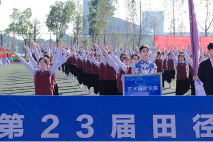 在阳光明媚的今天,我校第23届运动会隆重开幕。当艺术设计学院的运动健儿们步入会场时,全场沸腾。他们整齐的步伐踏出坚定,嘹亮的口号喊出激情,灿烂的笑容描绘希望,自信的眼神彰显实力,展现出青春风采和昂扬斗志。