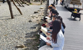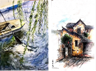 在接下来的几天,学生们来到大理的多个经典景点进行创作。从喜洲古镇的田园风光到龙龛码头的洱海蓝,用画笔描绘着大理的每一处美丽景象。同学们将洱海的清澈与苍山的雄浑呈现在画布上,展现出自然风光与历史文化交织的美感。通过速写与水彩,他们不仅捕捉了油菜花田的动人色彩,还塑造了白族民居飞檐的独特轮廓。