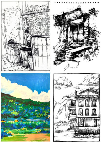 大理丰富多元的自然与人文景观,成为最生动的课堂。同学们手持画笔与速写本,全身心投入对光影、色彩、空间、形态的敏锐捕捉。每一处风景都考验着他们的观察力与表现力,每一幅速写与色彩习作都是与自然对话的真诚记录。