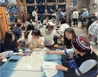本次实践课程尤为注重引导学生从深厚的文化土壤中汲取养分。在“白族扎染之乡”周城,同学们亲身体验了国家级非物质文化遗产——扎染的独特魅力。
