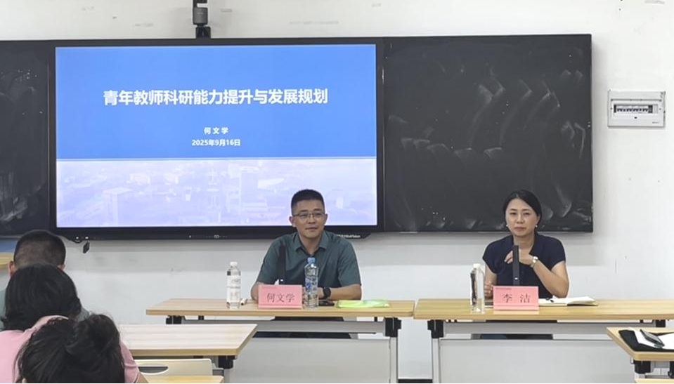 艺术设计学院于2025年9月16日在劲松楼104教室开展《青年教师科研能力提升与发展规划》专题讲座。此次讲座特邀学校学科建设与科学研究处处长何文学主讲,学院全体教职工参加。
