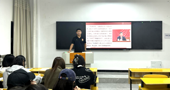 会上,学生党支部书记周晨晨进行主讲。他指出,习近平总书记在庆祝全国人民代表大会成立70周年大会上的重要讲话,是一篇闪耀着马克思主义真理光辉的纲领性文献,丰富和发展了习近平总书记关于坚持和完善人民代表大会制度的重要思想,为新时代新征程充分发挥国家根本政治制度作用、坚持和发展全过程人民民主、推进国家治理体系和治理能力现代化提供了科学指引和遵循。
