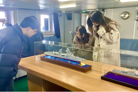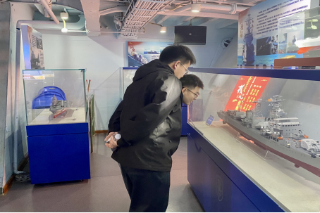 在南昌舰主题公园内,党员和团学干部们有机会近距离接触这艘承载着无数海军战士荣耀与梦想的军舰。他们依次参观了舰上的生活区、作战指挥区等重要区域,对海军官兵们的日常生活和工作环境有了更加直观和深入的了解。在军舰的炮台、会议室、驾驶室等关键部位,认真观察每一处细节,特别是当看到一系列珍贵的军舰实体模型时,大家纷纷感叹海军发展的艰辛历程和取得的辉煌成就。