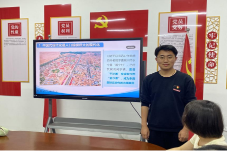 2025年4月10日19:00,艺术设计学院分党校在劲松楼202党员活动室开展第30期入党积极分子培训班第二堂党课——“读懂《中国式现代化》”。全体在校生党员、发展对象及第30期入党积极分子参与学习,此次党课由艺术设计学院学生党支部书记周晨晨主讲。