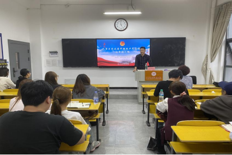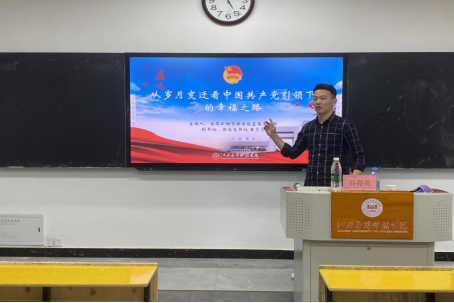 2025年4月22日17:00,艺术设计学院分党校在劲松楼102教室举办第十五堂党课——《从岁月变迁看中国共产党引领下的幸福之路》。全体在校党员、发展对象及第30期入党积极分子参加,党课由宝石矿物资源学院直属党支部副书记吕亮亮主讲。