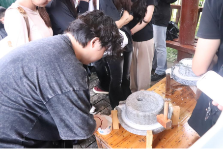 活动依托安义米粉小镇丰富的省级非遗资源,精心策划“非遗技艺劳动实践”专项活动。以江西省非遗宗山手工米粉制作技艺“选米-磨浆-蒸制-晾晒”的完整工艺链为蓝本,打造了文化认知与动手实践深度结合的劳动教育场景。活动现场,学生们积极参与“非遗创新工作坊”,并与企业代表就“米粉文创产品开发”展开深入研讨,将劳动实践从传统技艺体验延伸至创意经济领域,大胆探索米粉材质环保包装、米粉纹样服饰设计等创新方向。