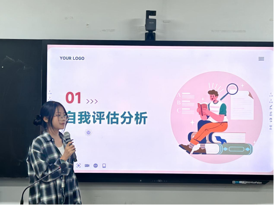 比赛开始前,6名参赛选手通过抽签确定比赛顺序,依次上台进行阐述。每位选手结合PPT演示,热情洋溢、条理清晰地讲解了自己的职业规划,积极展现个人主观能动性。从自我认识、职业探索到执行计划,他们全面展示了自己的职业生涯规划,展现出自己独特的风采。