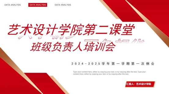 为了进一步提升24级新同学对第二课堂活动工程的了解,推进第二课堂成绩单落实以及用好“赣青二课”信息数据管理平台。艺术设计学院组织各班级第二课堂负责人10月10日在劲松楼104教室自行开展“第二课堂活动工程培训会”,为各班级负责人介绍我校第二课堂活动工程,为学院之后第二课堂活动的顺利开展奠定了坚实基础。