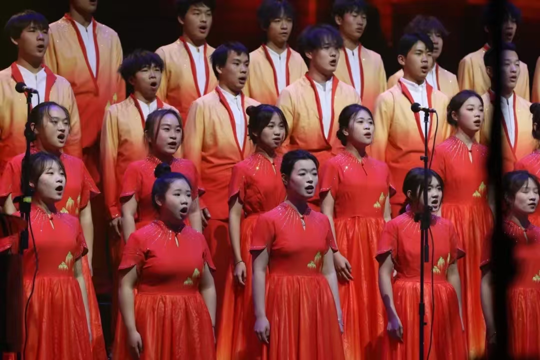 活动现场,合唱队员们个个精神抖擞,以激昂澎湃的歌声演绎经典曲目《在太行山上》。他们将对革命先辈的崇敬、对祖国山河的热爱融入每一个音符,歌声时而高亢,如太行山上的巍峨峰峦,直插云霄;时而低沉,似山间潺潺溪流,诉说着往昔岁月的艰辛与坚韧。指挥老师的指挥精准有力,节奏把握恰到好处,极大地增强了合唱的艺术感染力。台下观众深受触动,沉浸其中,现场掌声雷动。