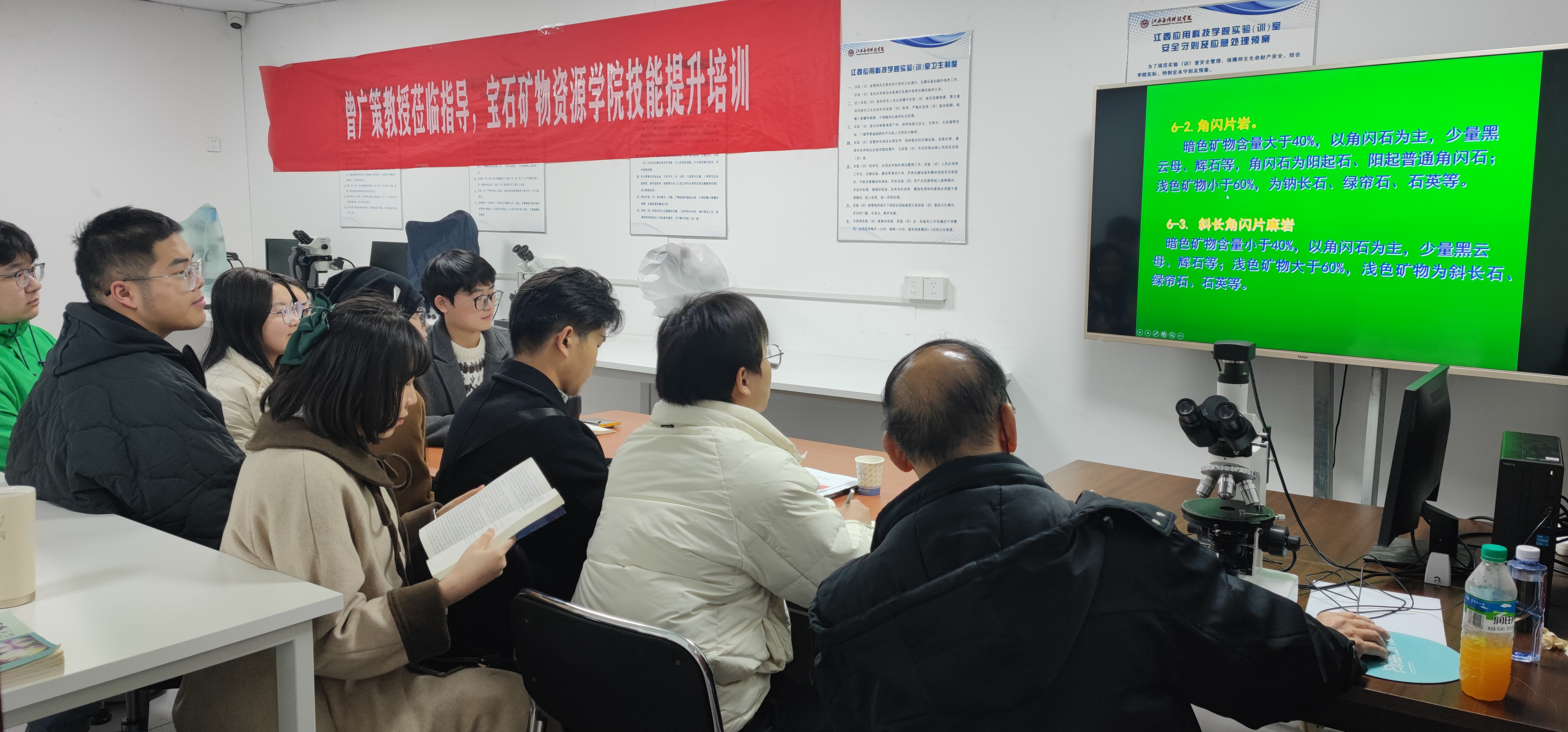 本次课程从11月24日起至12月24日,历时一个月整。曾广策教授严谨治学,在备课过程中为本次培训课程的内容进行反复精进与修改。曾教授积累了丰富的实战经验,能够深入浅出地讲解复杂理论,同时主动分享宝贵的行业经验和多年积累的研究成果,以助力宝石矿物资源学院专任教师们在晶体光学与鉴定方面的专业素养的提升,同时也为我院学子的学习之路保驾护航。