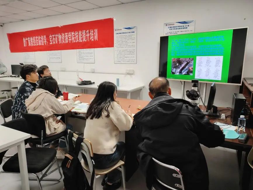 曾教授对辉石、橄榄石、角闪石、长石、石英等岩浆岩中的主要矿物进行了详尽讲解,并巧妙结合实际案例,引导教师们通过观察对应的矿物薄片,进一步巩固所学知识,有效提升了大家对矿物的鉴定能力,为今后的教学与科研工作奠定了更为坚实的基础。