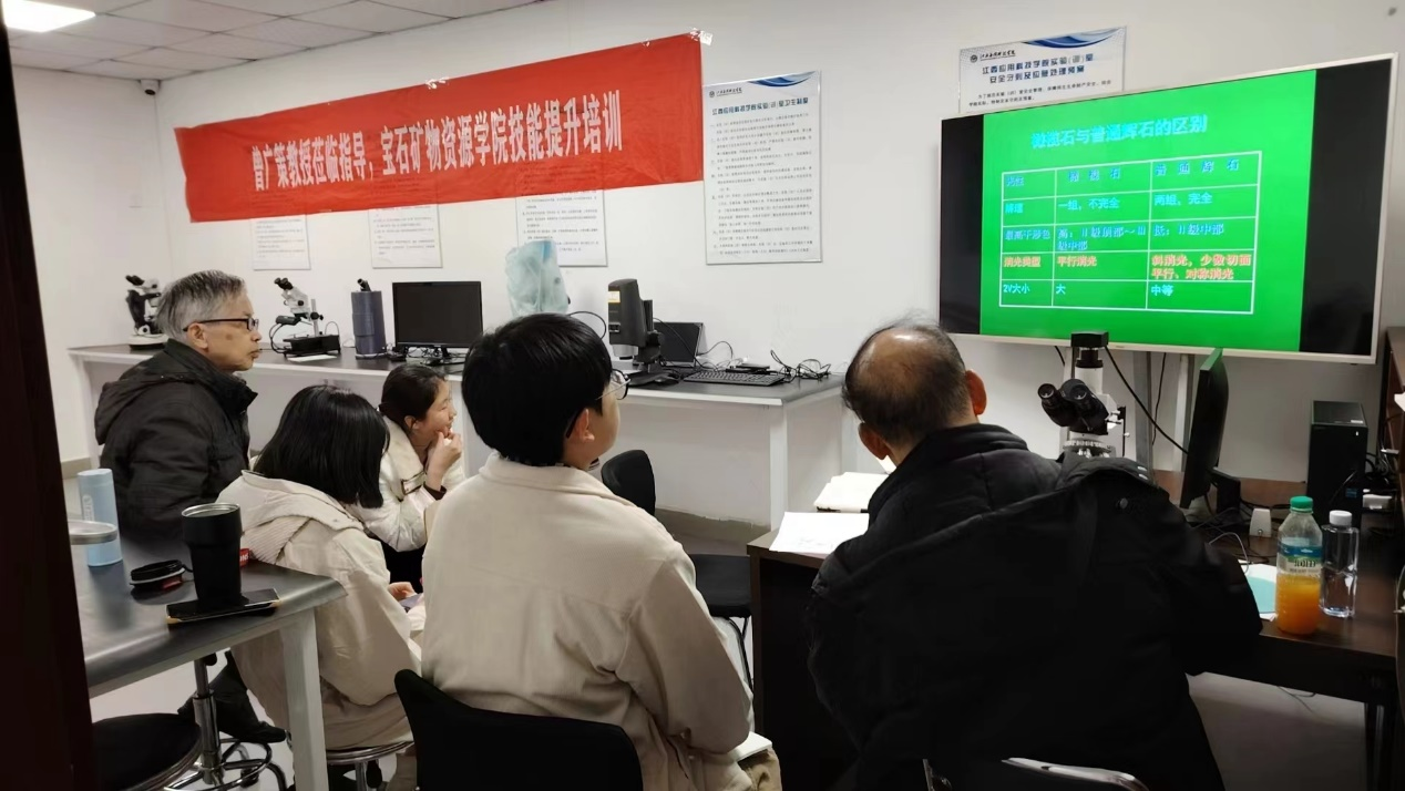 2024年12月21日至12月23日,中国地质大学(武汉)矿物岩石地球化学的曾广策教授,为宝石矿物资源学院的教师们带来了岩浆岩岩石学、沉积岩岩石学和变质岩岩石学三大岩类的专题培训,也带来了造岩矿物显微镜下鉴定的专题培训。造岩矿物显微镜下鉴定的专题培训聚焦于运用所学晶体光学与光性矿物学等知识,正确应用偏光显微镜系统地鉴定矿物、岩石及材料等。