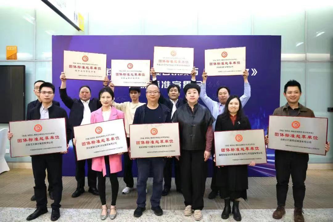 会议最后举行了团体标准起草单位授牌仪式。由中宝协团体标准化工作委员会副主任委员兼秘书长马悦悦女士,珠宝首饰职业技能鉴定指导中心副主任张斌为珠宝玉石首饰国检集团北京教育科技有限公司、国家珠宝玉石质量监督检验中心实验室有限公司、江西应用科技学院、北京轩辕十四星空文化有限责任公司、天坛星辰(北京)文化展览有限公司、哈尔滨市陨石学会、济南星球矿业有限公司、江苏江文展示展览有限公司、合肥小行星陨石珠宝有限公司9家单位授牌牌,标志着行业对标准制定工作的高度认可与支持。