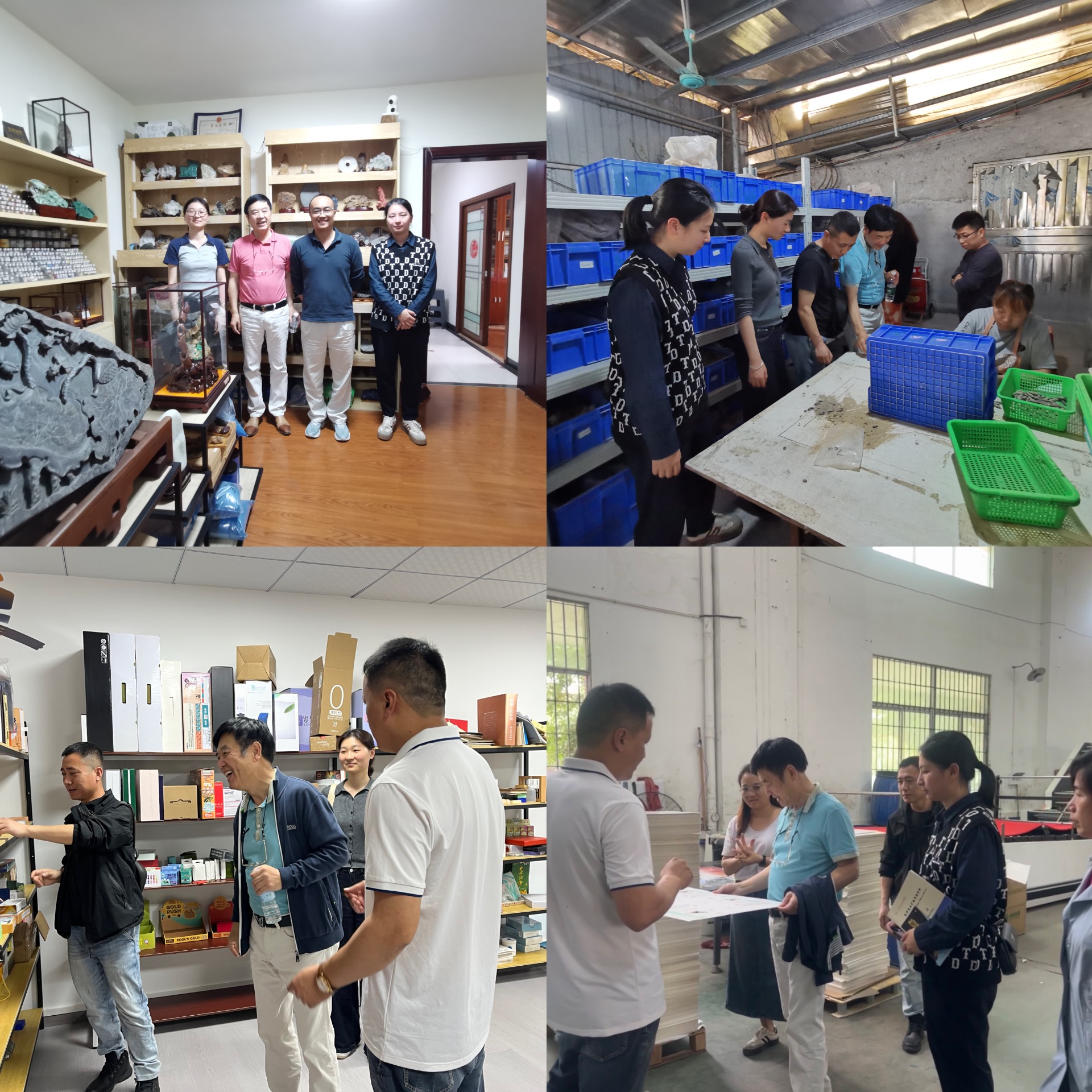 考察首日,团队先后走访广州思昌包装、石光纪、浩宇科普等企业,实地观摩矿物标本制作、宝石加工及科普展具生产全流程。刘光华副校长在调研中强调:“科普产品需兼顾科学性与创新性,此次考察为教学标本研发和校企合作提供了宝贵经验。”教师们与企业技术骨干围绕材料工艺、功能设计等展开深度交流,并达成初步合作意向,未来将联合开发教学实践产品。
