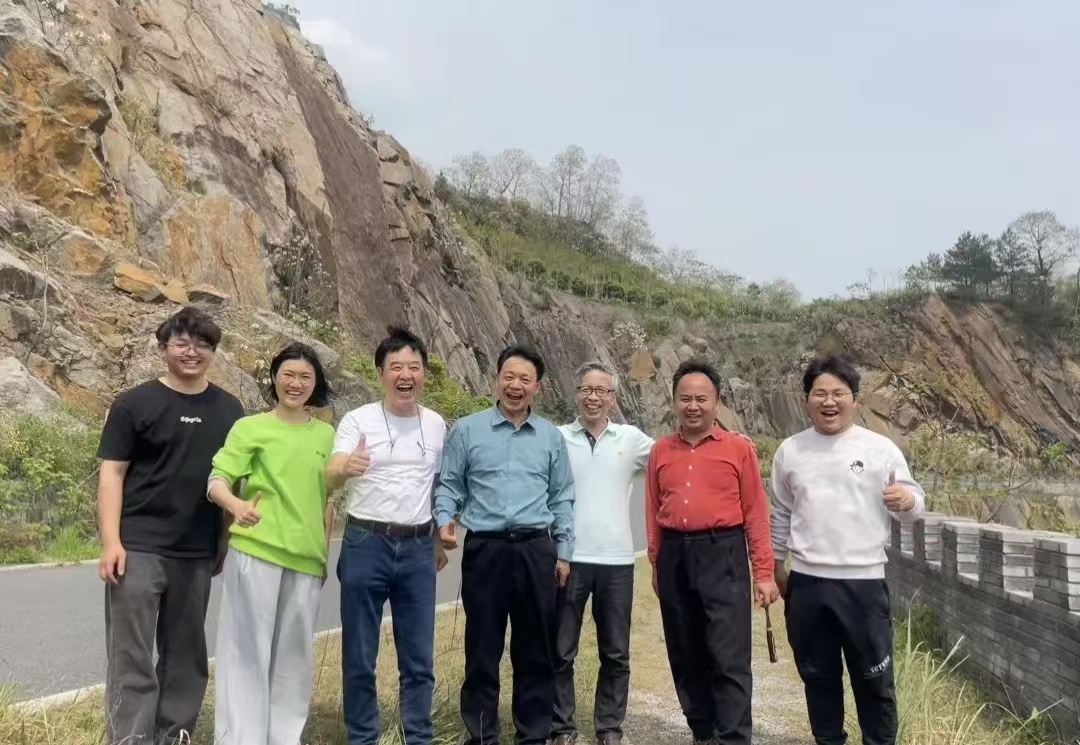 随后,马教授实地考查了学院认识实习与地质科普的一个实习点—矿山公园。该矿山公园主体属燕山期花岗岩,局部发育变质岩,现场保留的大型花岗岩采石场断面,展示了岩浆入侵的先后顺序,不同时期的侵入脉体以及地质构造特征。