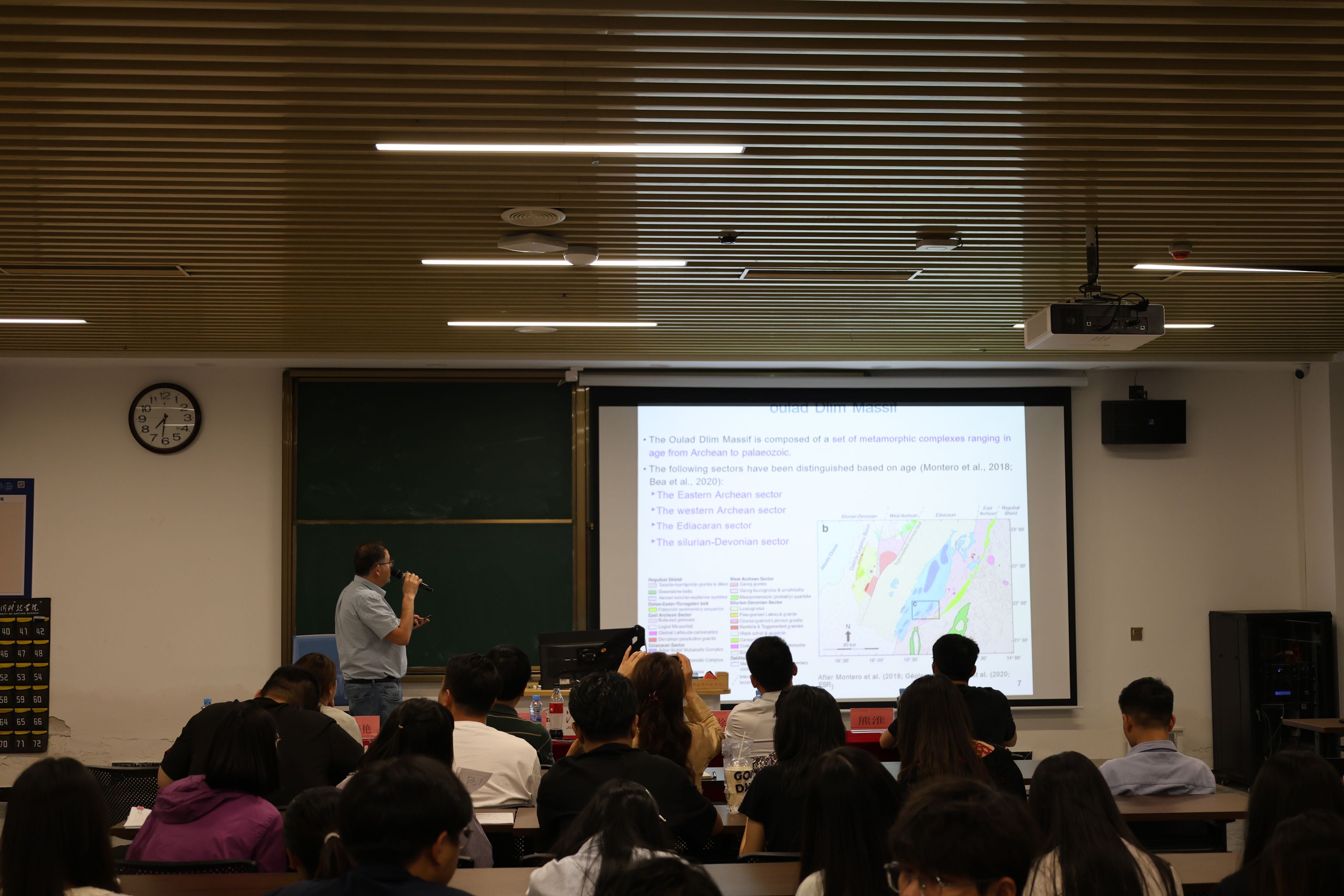 5月25日晚,为宝石矿物资源学院师生带来了一场以《阿德拉-苏图夫变基性杂岩体(西撒哈拉)中热液-岩浆-岩石相互作用过程及其岩石结构与地球化学证据》为题的高水准学术报告。本次活动由宝石矿物资源学院院长刘光华教授主持,江西省国际科技交流促进会秘书长徐步云、副秘书长曾春艳、来自学院的老师和100余名同学参加。