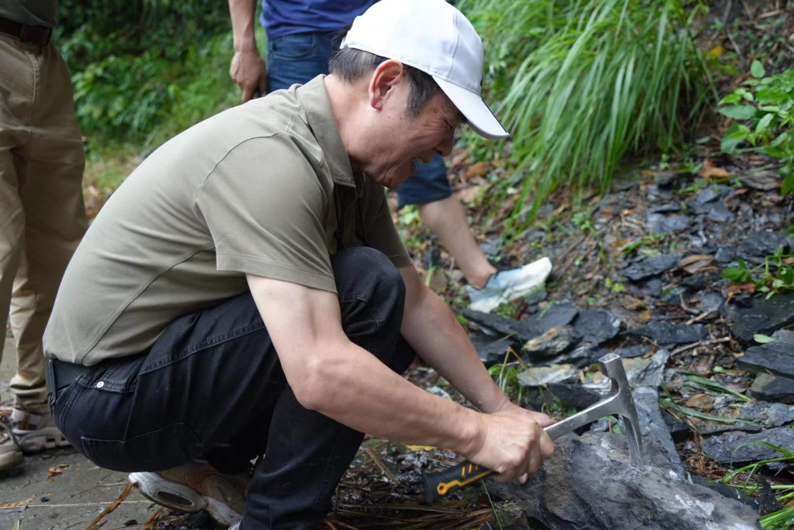 赣州崇义铅厂镇晚泥盆世化石点,地处南岭地块东北缘、华南早古生代造山带核心区,其晚泥盆世(约3.7-3.54亿年前)地层以陆相碎屑岩为主,记录了泥盆纪“鱼类时代”向“植物登陆”过渡期的关键生态演变。泥盆纪(约4.1亿-3.6亿年前)被称为“鱼类时代”,该化石点可揭示脊椎动物登陆前的水陆环境交互关系。尽管铅厂镇未发现完整鱼类骨骼化石,但其沉积环境与区域古生物地理暗示了盾皮鱼、肉鳍鱼的存在可能,考察现场,盖志琨博士和龚一鸣教授让年轻老师们仔细寻找鱼类化石,根据早期肉鳍鱼类(四足动物祖先)化石及同期植物群,可以分析陆地生态系统起源。
