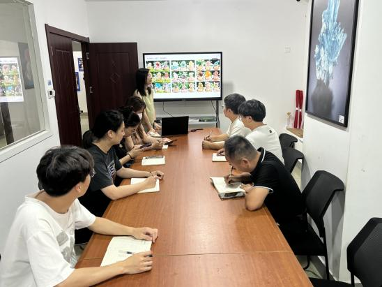 “科创产品开发全流程”专题培训聚焦自然遗产主题科创产品的市场化开发,覆盖设计、生产到营销全链条关键环节。培训中,黎嘉宝导师以博物馆特色藏品为案例,拆解产品开发全周期。“科创产品生产全流程管控”专题培训聚焦自然遗产主题科创产品的产业化落地,系统解析从生产计划到物流交付的全链条环节,全面提升团队市场化产品交付能力。培训中,黎嘉宝导师以博物馆首批开发的“矿物晶体互动教具”“古生物主题盲盒”为实战案例,深度拆解生产管理全流程。“产品摄影”专题培训聚焦矿物教具与科创产品的视觉价值转化,系统解析商业级产品组图拍摄标准与布光技术,助力教师团队掌握"让矿物会说话"的影像叙事能力。培训中,黎嘉宝导师以博物馆首饰系列产品为实操案例,在基础视觉档案构建环节,详解一套商业组图的拍摄逻辑。“矿晶衍生品创新案例与商业逻辑”专题培训通过拆解“矿晶小豆丁”、“矿晶微景观”、“水晶盆栽”等市场热销案例,揭示产品设计背后的消费心理学与商业模式,为博物馆新品开发提供实战参考。培训中,黎嘉宝导师以当前市场上出现的现象级产品为样本,系统解码三大商业逻辑。“新媒体运营”专题培训紧密围绕博物馆在数字时代的科普传播与品牌宣传需求,旨在通过系统化的讲解与实战演练,全面提升教师团队运用新媒体平台讲好自然故事、连接公众、拓展服务边界的能力。本次培训内容深度覆盖新媒体运营全链条核心环节。