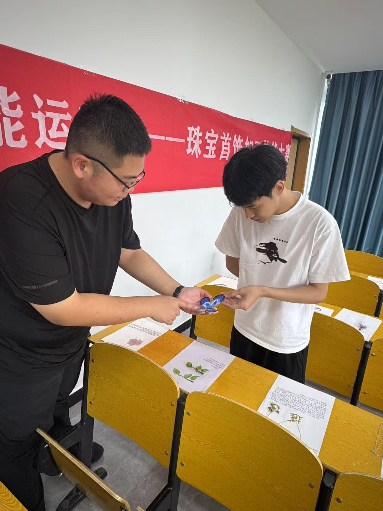 评审过程中,评委们不仅考量作品的工艺难度,还对设计理念、文化内涵等方面进行了探讨和打分。评审过程严谨且专业,评审团中不乏国家职业技能鉴定考评员和江西省职业技能竞赛珠宝加工赛项裁判员。评审团依据选手作品的创意性、工艺难度、焊接质量、抛磨质量和完成度等进行综合评判,对作品进行全方位考量。现场评审时,专家们借助放大镜、卡尺等专业工具,仔细检查首饰的金属接缝、宝石牢固度等工艺细节。