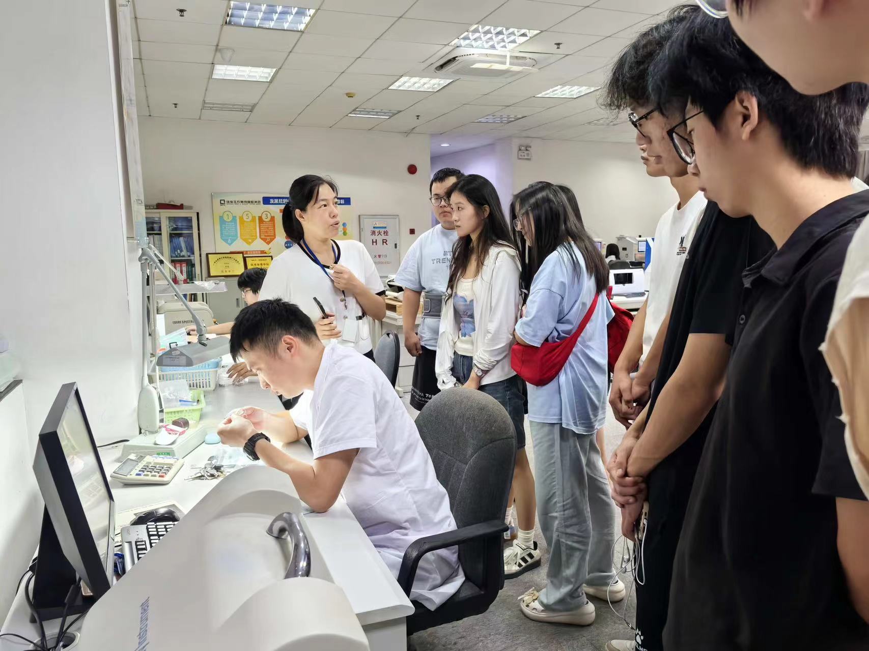 国家珠宝玉石首饰检验集团有限公司广州实验室作为国家级权威机构,向师生展示了珠宝玉石检验检测的先进仪器设备与标准化操作流程。在杨坚总经理的组织下,实验室一级总监杨春梅及综合服务部经理叶建芬等专家团队的深度讲解中,帮助学生掌握了宝石鉴定的行业规范,强化了“理论—实践—标准”的一体化思维。学生们在参观国家级检测实验室时,对红外光谱仪、拉曼光谱仪等设备的实操应用表现出浓厚兴趣。