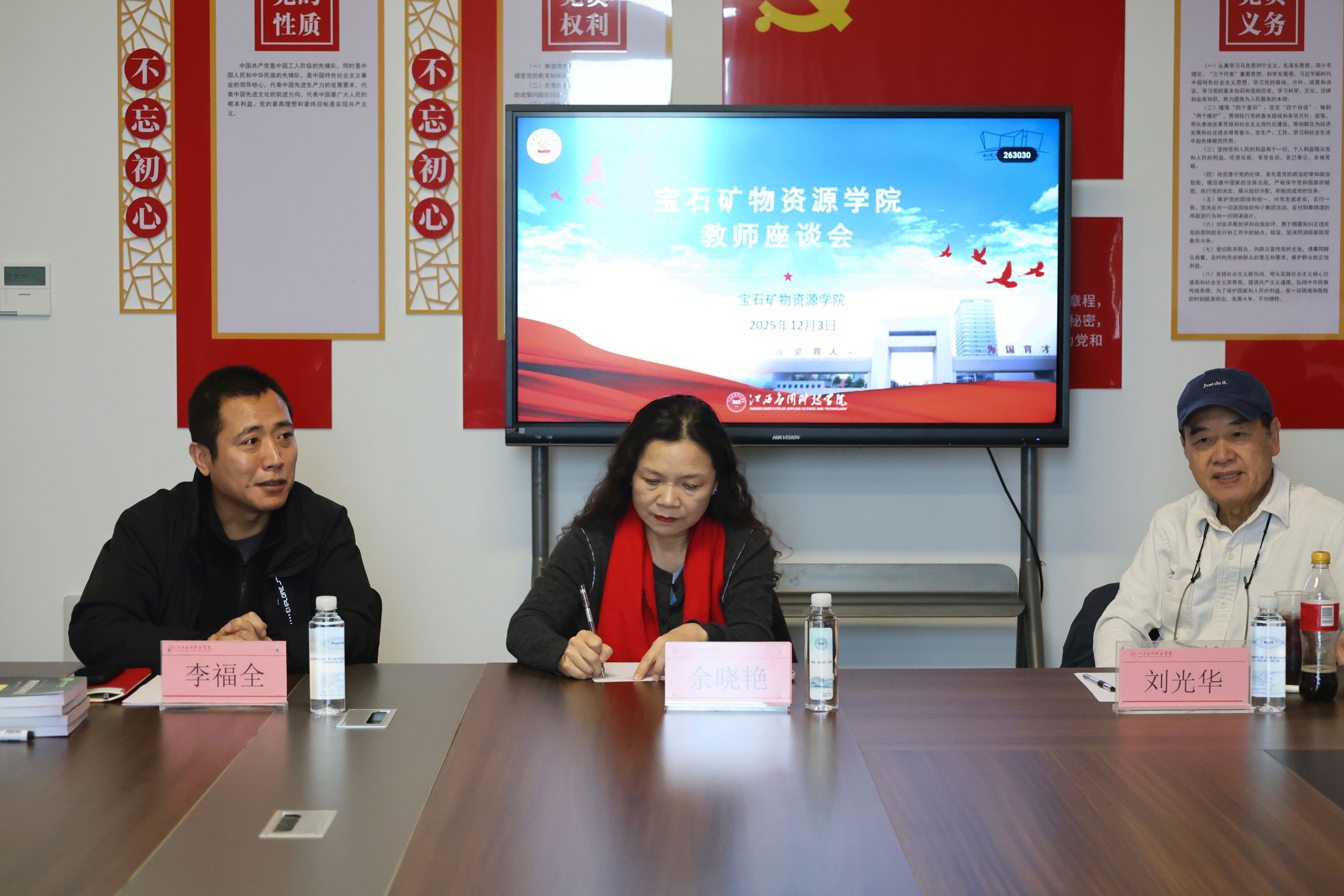 12月3日上午,余晓艳教授与我院教师围绕学科建设、人才培养、产业发展等核心议题展开深入交流,为教师发展指明路径,为珠宝领域教育高质量发展提供了务实思路。